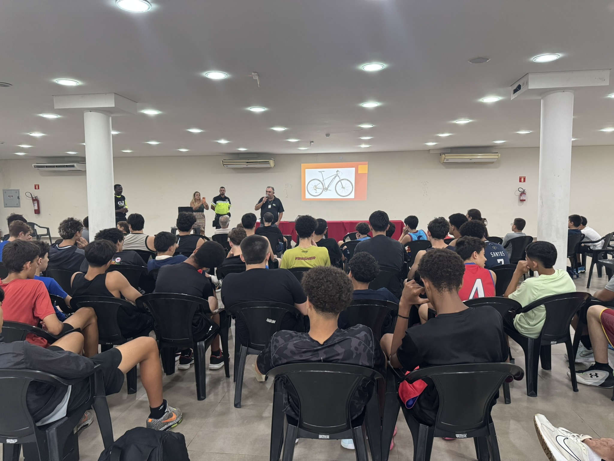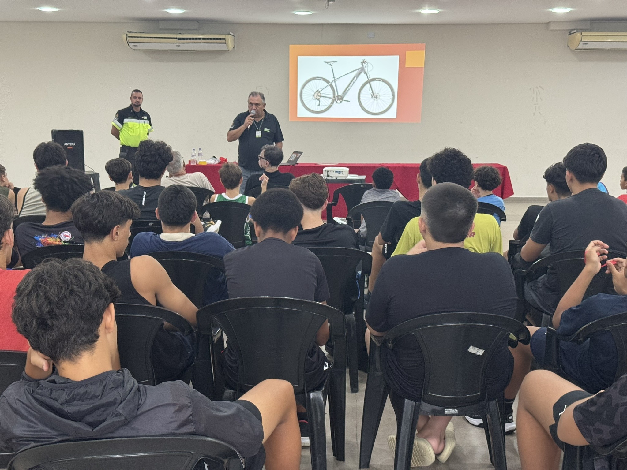 A iniciativa foi direcionada a atletas e associados de 11 a 17 anos que utilizam a bicicleta em seus deslocamentos diários e integra o programa Trânsito mais consciente, voltado à orientação de jovens ciclistas.