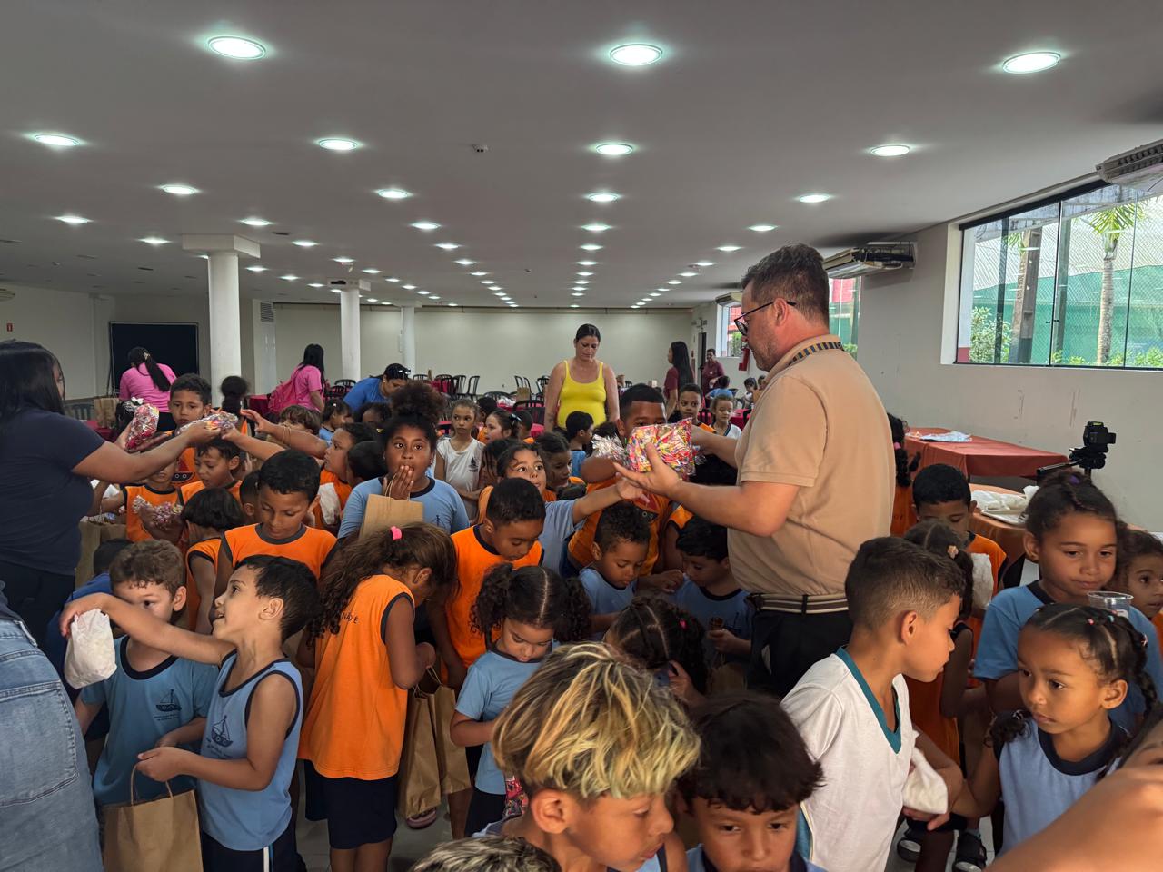 A sede social do Clube Internacional de Regatas recebeu uma visita especial nesta segunda-feira (6). As crianças da Associação Maria Tereza de Almeida Chagas, localizada no bairro Santa Cruz dos Navegantes, em Guarujá, participaram de uma tarde repleta de brincadeiras, diversão e lanches, em comemoração ao Dia das Crianças.