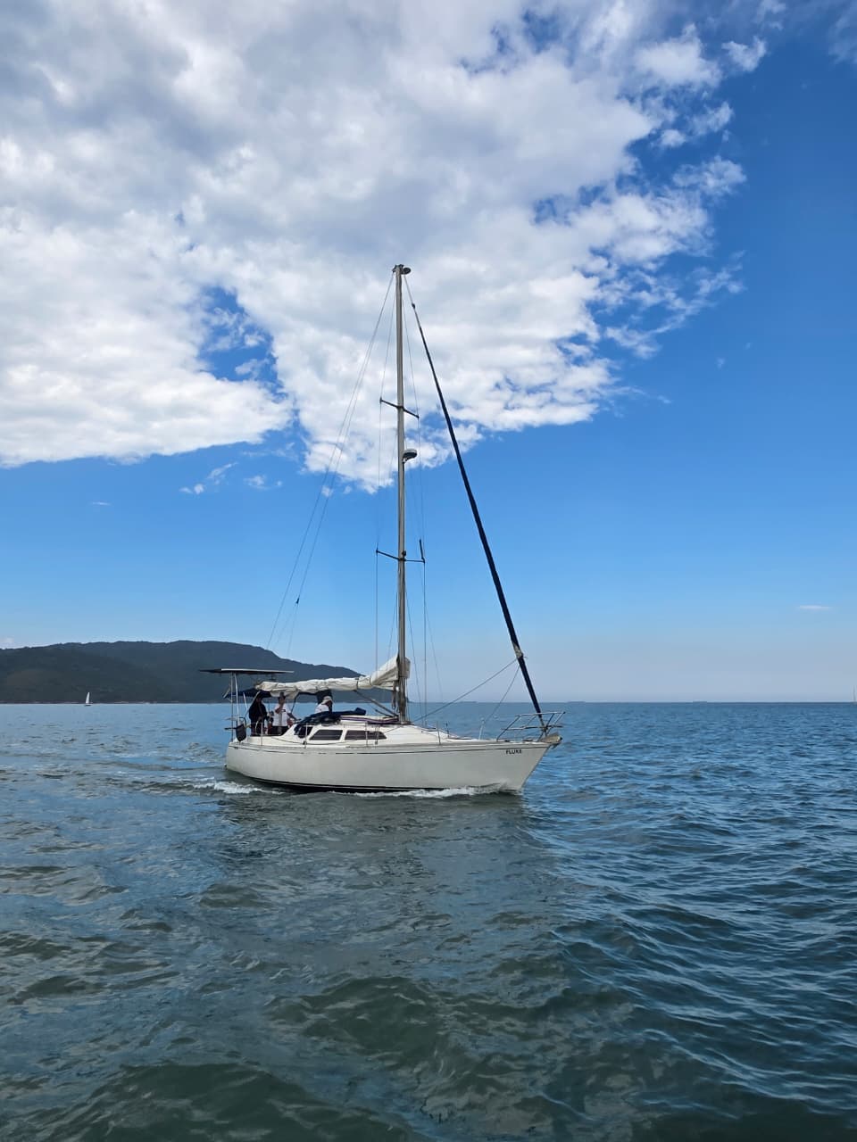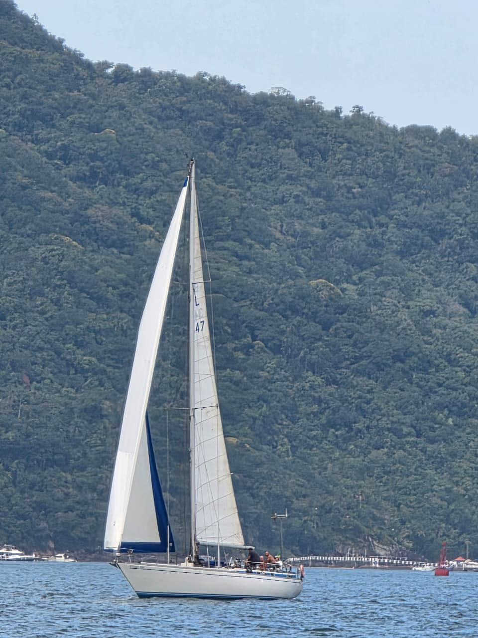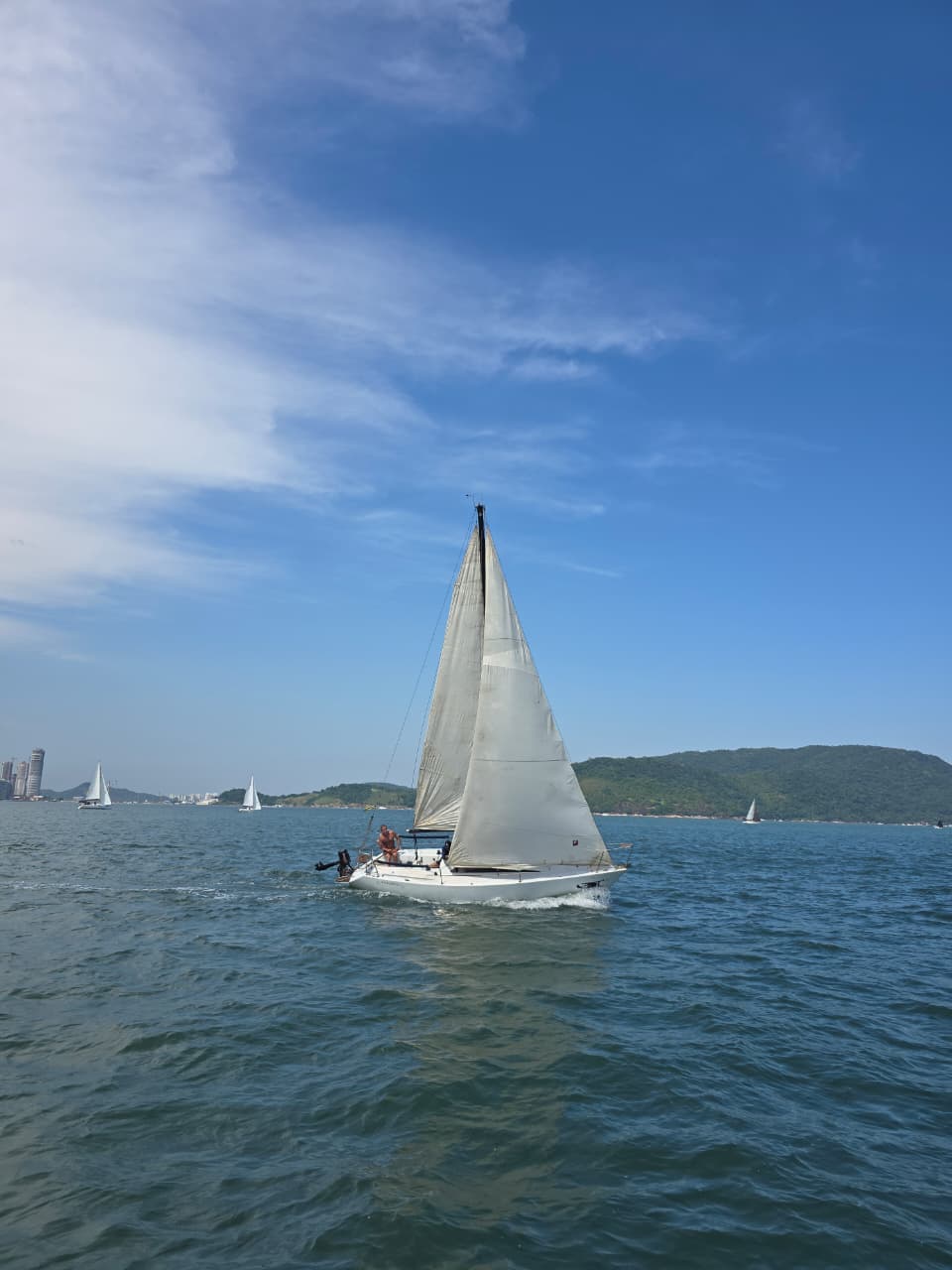 “O sábado amanheceu chuvoso, mas logo o tempo abriu, dando lugar a um belo dia de sol. O mar estava bem calmo, mas os ventos variaram de fracos a moderados, o que exigiu muita técnica dos competidores”, explicou Adagamos Sartini, associado do Clube e comandante do veleiro Gaia.